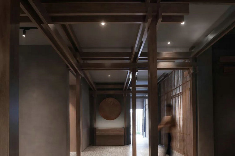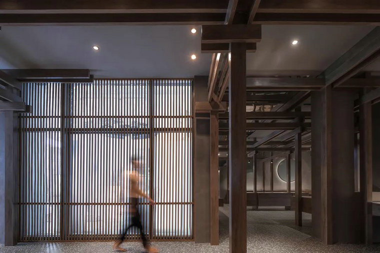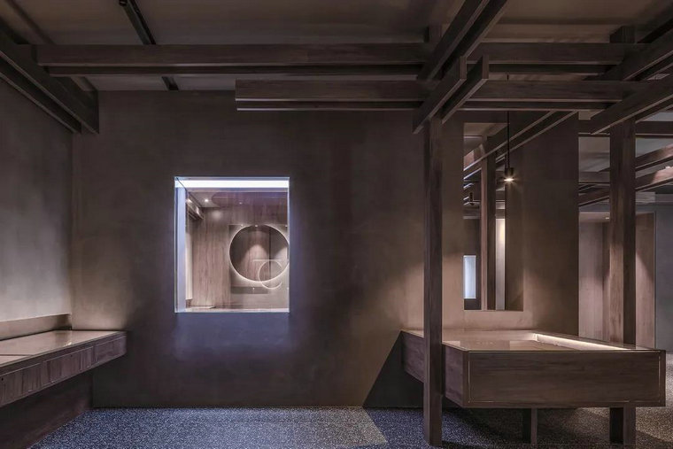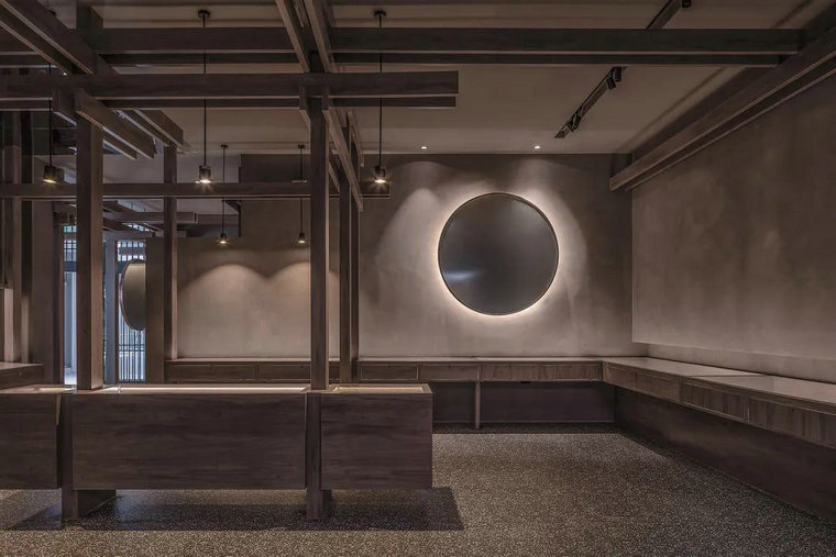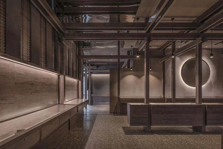材質(zhì),往往賦予空間質(zhì)感與情緒表達。多維化內容呈現,在不同時(shí)段,伴隨著(zhù)人群、光線(xiàn)、甚至空間中氣息的變化,讓其整體充滿(mǎn)了流動(dòng)之美。結構層次的陣列排布,乍看之下冷峻而秩序井然。深灰色水磨石的存在烘托出空間的古典氣質(zhì),其走勢亦于無(wú)聲處引導著(zhù)觀(guān)者情緒與步伐。